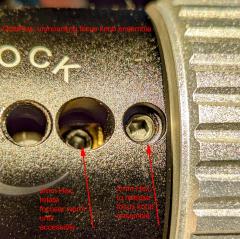 Die kleineren Madenschrauben halten lediglich den schwarzen Aufbau für die Lock Schraube, und müssen nicht gelockert werden.