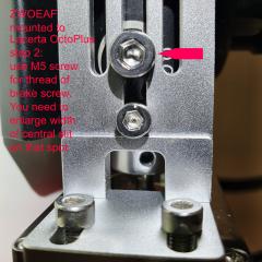 Sollten die Befestigungsschrauben nicht innerhalb des Tubus zugänglich sein, muss das Fokuswellengehäuse abgebaut werden (4 Schrauben unten neben der Feststellschraube). Nach dem Anbau kontrollieren die Friktion der Welle und stellen die nötigenfalls neu ein - lösen Sie vorher die Madenschraube in der Mitte etwas, und stellen die Friktion ein - bitte nicht zu fest! Die Bremsschraube ist seitlich angebracht, es ist nicht die Madenschraube in der Mitte.