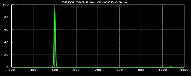 Schmalbandfilter für O-III - CWL bei 500nm, 80% Transmission, 0.1% im Offband